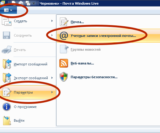 Настройка Microsoft Windows Live1) Открываем меню: ![]() 2) В списке «Почта» выбираем учётную запись почты нашего почтового сервера.Если их несколько, то настроить надо будет все. Различия между настройкой записей разных типов (POP3/IMAP) будут показаны далее. ![]() 3) На вкладке «Серверы» ставим галочку «Проверка подлинности пользователя»: ![]() 4) На вкладке «Дополнительно» сначала выставляем галочки безопасного соединения, потом проверяем правильность портов: ![]() 5) Для учётной записи IMAPпорт будет другим: ![]() 6) Нажимаем «Далее», «Закрыть». 7) Настройка окончена. Для проверки можно отправить письмо самому себе, чтобы убедиться, что и отправка, и получение работают. |